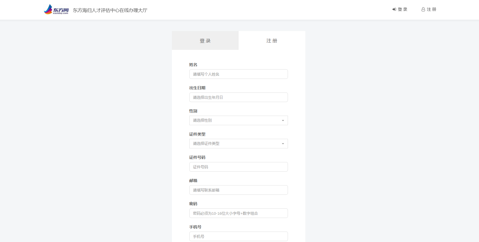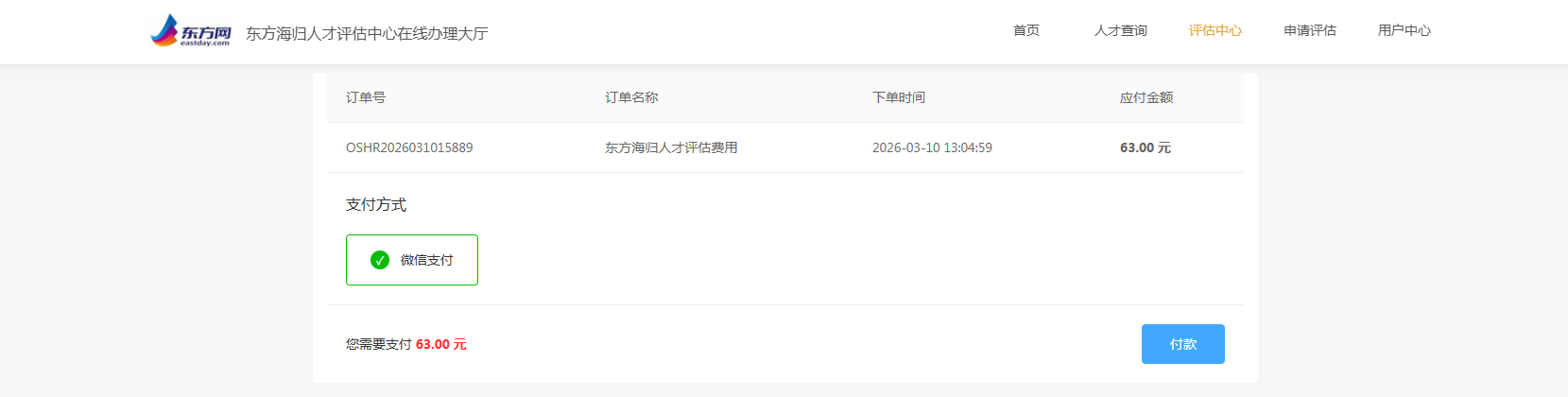 东方海归人才评估中心服务协议