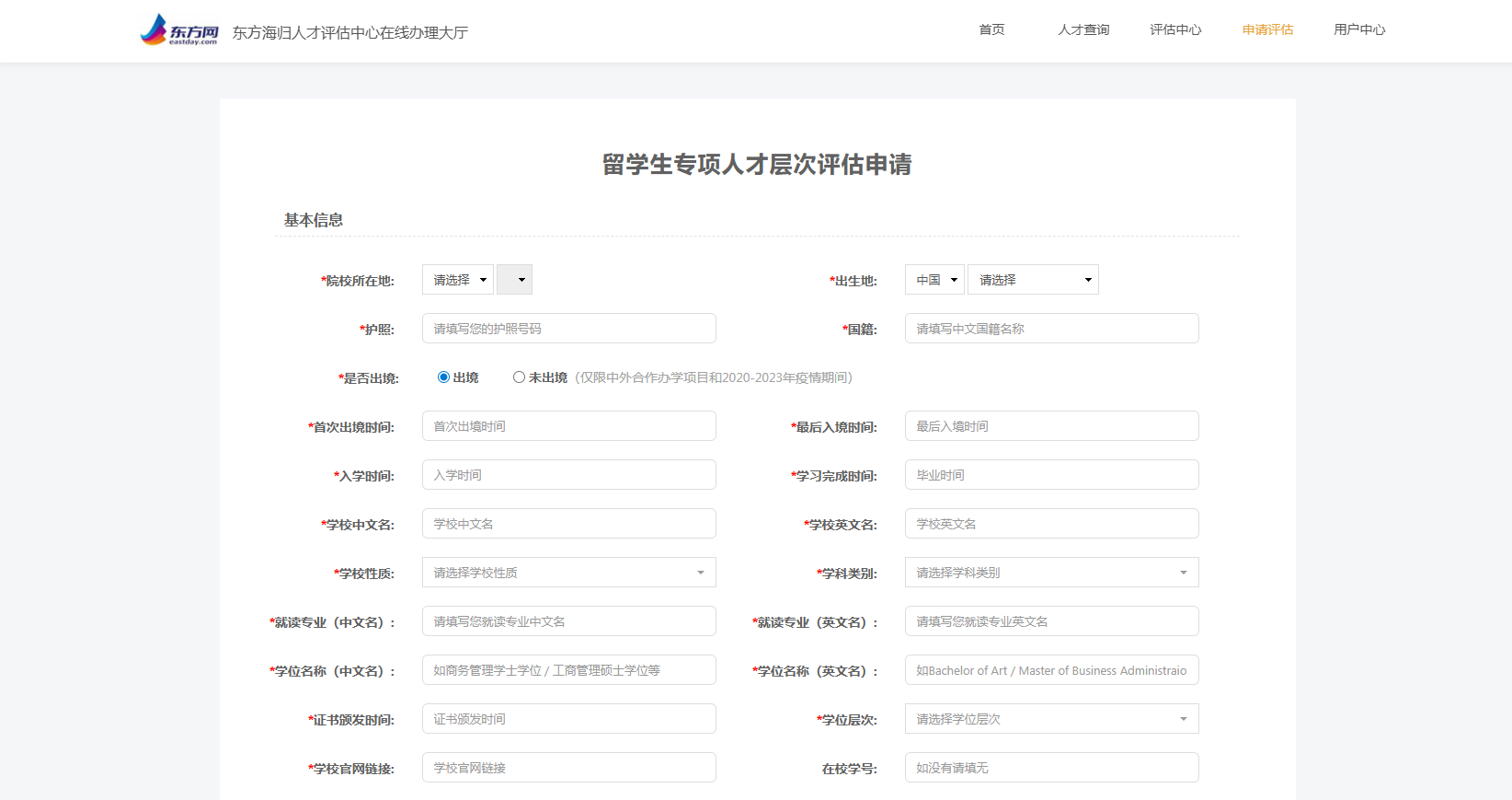 1、填写完成东方海归人才评估报告唯一邮寄地址即可提交评估。