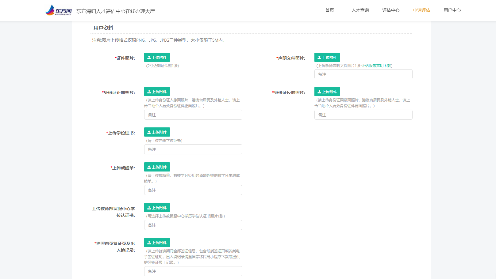 2、备注中填写对应证件的相关描述文字,以加快评估审核人员进度。